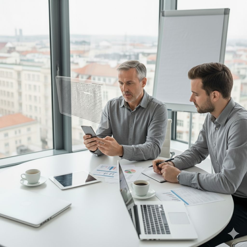 AI zapisovatel, ne ruční poznámky. Místo ztracených bodů a nepřehledných zápisů máte jasný přepis a úkoly pro celý tým. Schůzka končí hotovým výstupem – úspora času a žádné dohady. AI navíc vytáhne akční body a připraví e-mail všem účastníkům.